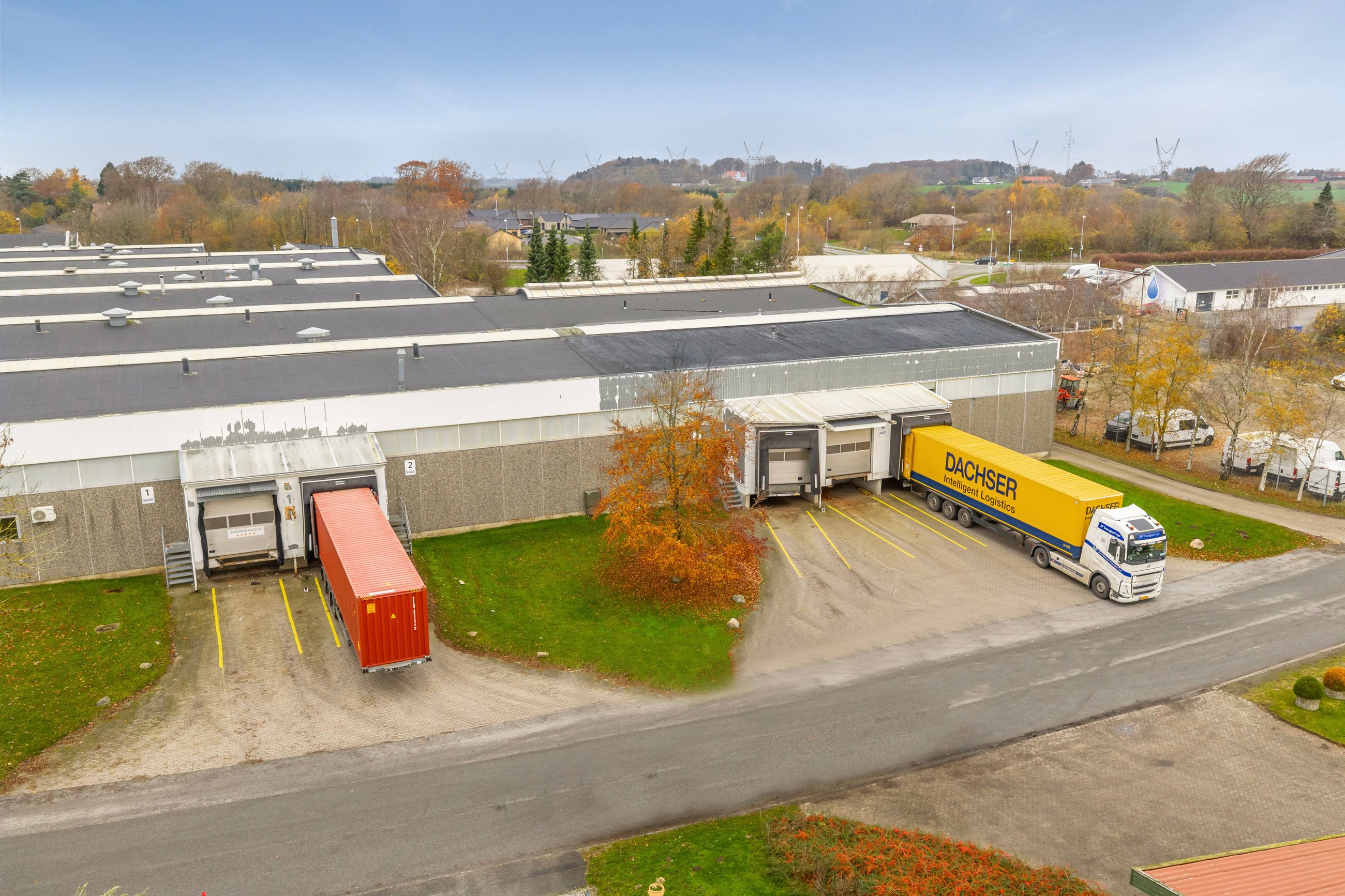 Området er et etableret industrikvarter med gode parkerings- og manøvreringsforhold for lastbiler, varevogne og personale.