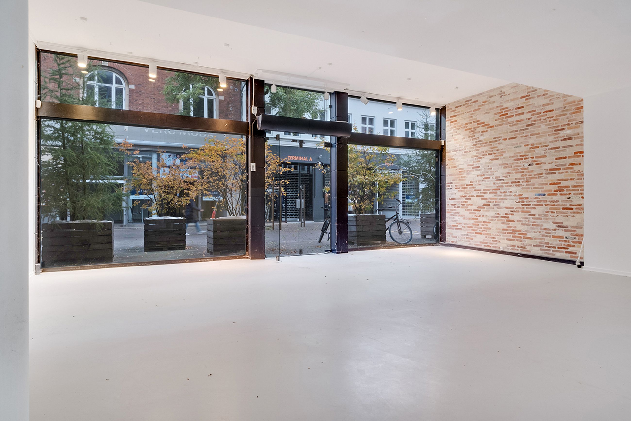 Lokalet har et pænt og regulært butiksareal, der kan tilpasses mange formål – alt fra showroom, detail, klinik eller kontor til kombineret konceptbutik med mødefaciliteter.