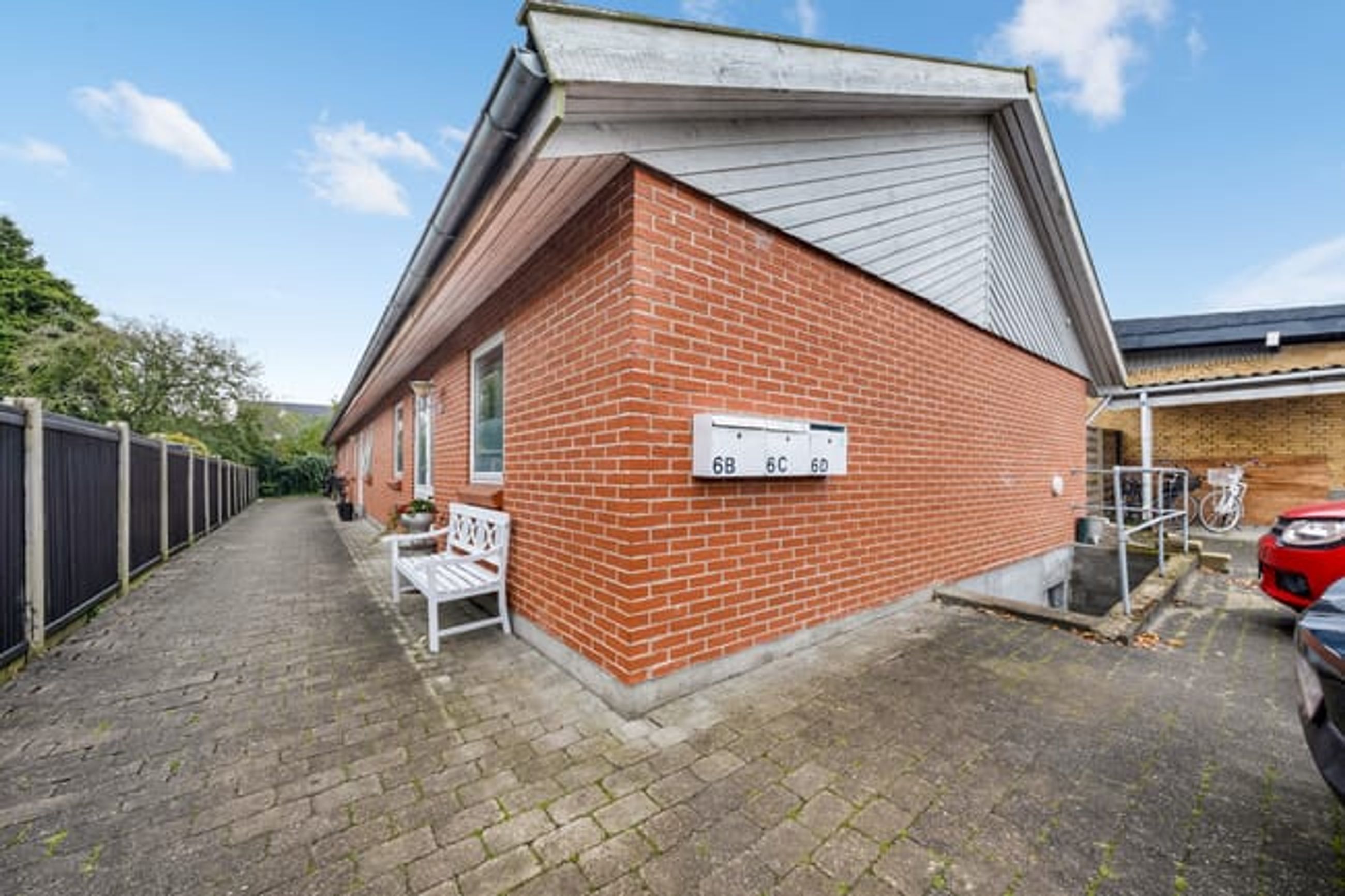 Bygningen er opført i 2003 i rødstensmur og fremstår solid, pæn og veldisponeret. Der er flisegang foran husene samt parkeringspladser til beboerne ved endegavlen af ejendommen. Hver bolig har en lille terrasse, som kan bruges til udendørs ophold, grill og afslapning. Udearealerne er overskuelige, velholdte og nemme at administrere.
